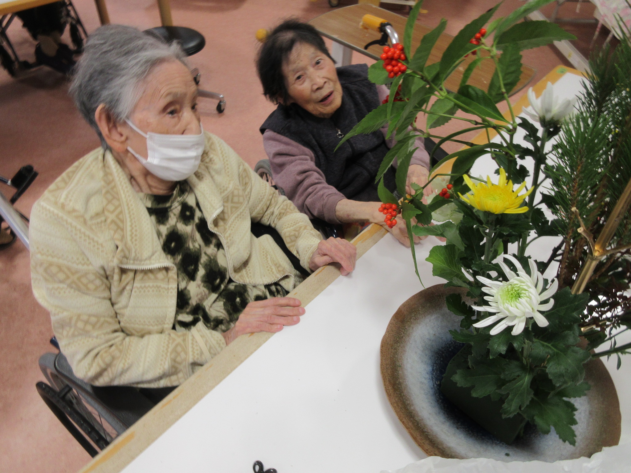 また年末には、新年を華やかに迎えられるよう、職員とご利用者が協力してお正月の花を生けました。おかげさまで、笑顔あふれる年末年始を過ごすことができました。ご支援ありがとうございました。